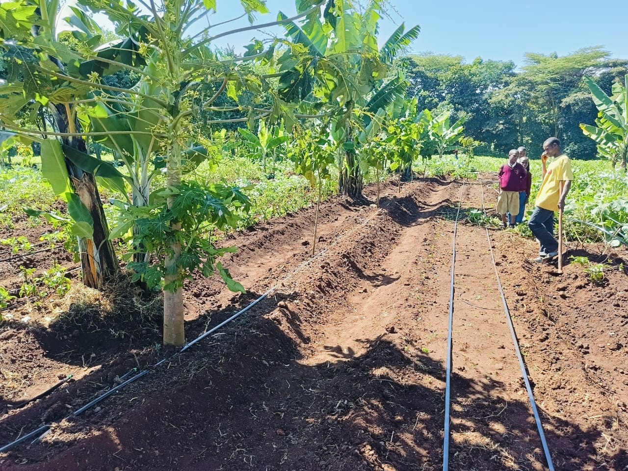 As we steadily march into Spring, the garden at Tloma Primary School in Tanzania has been so successful that not only do the children get fruit every day, but baby banana trees are being given to every family in the Tloma community. To assist in the continued success of this endeavor, we funded the installation of a drip irrigation system, to allow the plants to thrive but conserve water usage.