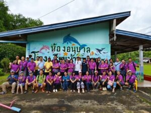56 Associates and Trip Leaders from Thailand spend the day cleaning and landscaping this small rural school of 103 students.